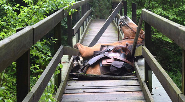 Horse Rescued By Helicopter After Falling Through Bridge