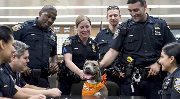 Police officers in New York City who rescued a dangerously malnourished pit bull in April are trying to rescue the dog a second time by finding her a loving home.