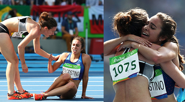 In what can only be called an act of true sportsmanship, New Zealand's Nikki Hamblin stopped in her 5000 meter semi-final to walk USA's injured Abbey D'Agostino to the finish line.