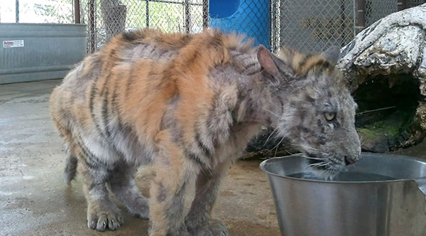 This 9-month-old tiger was so ill and mistreated, she weighed only 30 pounds when she was supposed to weigh about 120 pounds.
