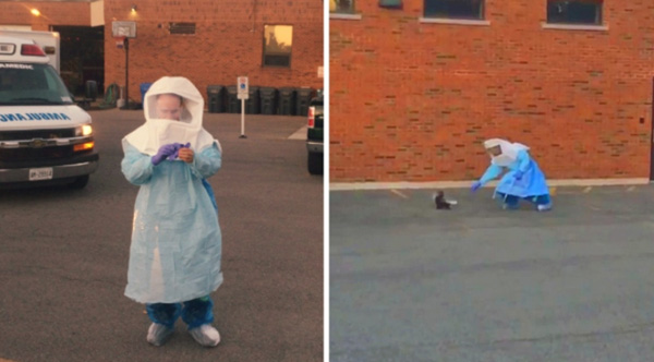 Paramedic Puts On Outbreak Gear To Rescue A Skunk With A Cup Stuck On Its Head