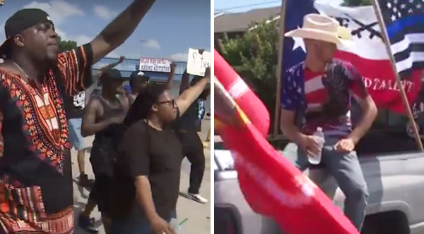 A Black Lives Matter protest group meets a counter-protest group on the streets of Dallas.