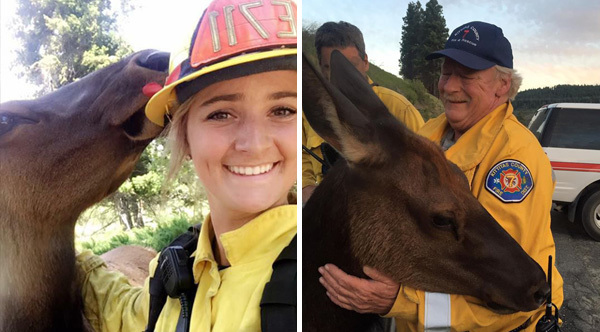Orphaned Elk Shows Up At Wildfire, Snuggles Up On ALL The Firefighters