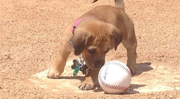 Puppy Abandoned At Baseball Stadium Becomes Team's First Bat Dog