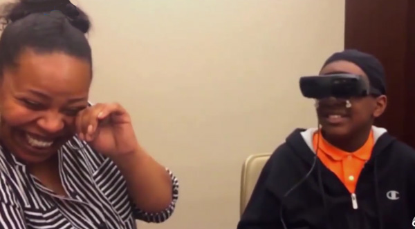 Fifth grader Christopher Ward, Jr., has been legally blind all his life, but he recently got to see his mother for the first time through new electronic glasses.