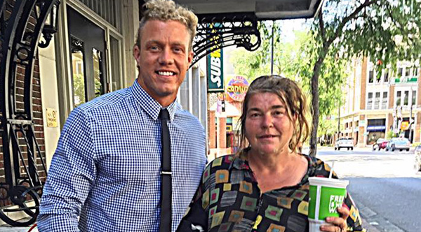 Greg Smith works in downtown Orlando and has been passing by the same homeless woman every week. She never asks him for money, but always greets him with a smile.
