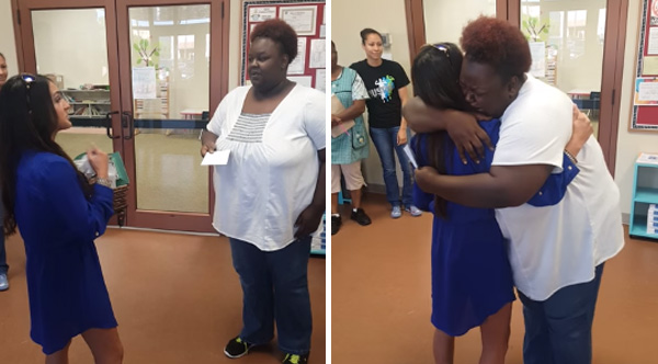 A Louisiana daycare worker breaks down in tears of joy when a mom hands her this piece of paper.