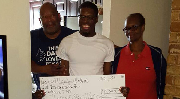 Stefun Darts wrote them a check for $15,000 that will pay off their mortgage and pay for a trip to the Bahamas to celebrate.
