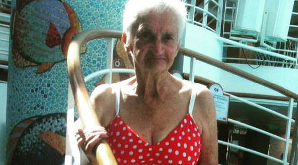 Irene, a gorgeous 90 year old woman on her family cruise, shines in a two piece.