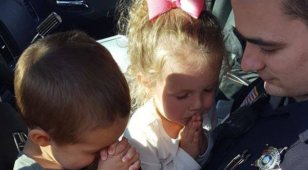 Jordan Perkins says a prayer with his children every day before he begins work at the Cleveland County Sheriff's Office in North Carolina.