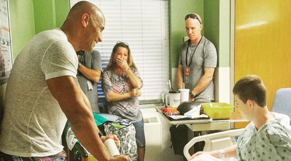 Instead of heading back to the shoot, Dwayne Johnson put production on hold and took time to visit with this young man.