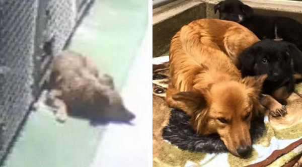 Dog Sneaks Out Of Kennel At Night To Cuddle Scared And Crying Foster Puppies