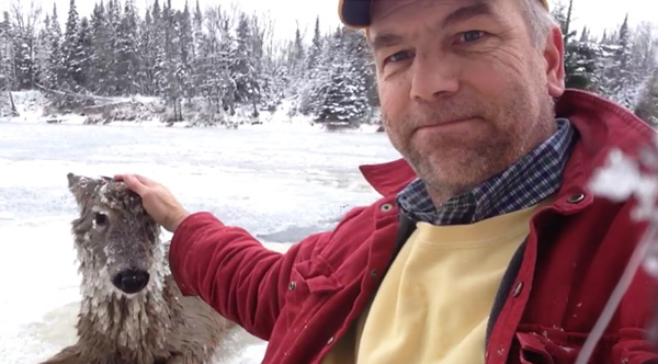 Deaf Man Pets A Deer That He Just Saved From An Icy Death