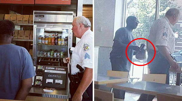 A 35-year veteran of the Chicago Police Department is being praised on social media after photos of him buying a homeless man lunch from Chipotle were shared on Facebook.