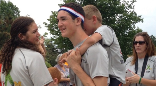 After walking 57 miles with his brother on his back, 15 year-old Hunter Gandee was nothing but smiles as he crossed the finish line and hugged supporters on Sunday.