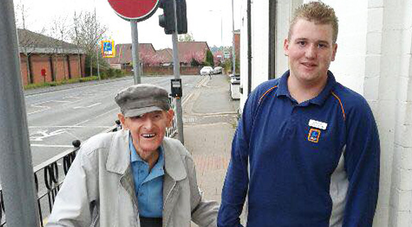 Christian Trouesdale, an Aldi supermarket employee in Manchester, has become an internet hero for leaving work to walk a senior citizen home.
