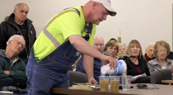 This Nebraska man offers oil and gas commissioners a glass of polluted water to prove an excellent point.