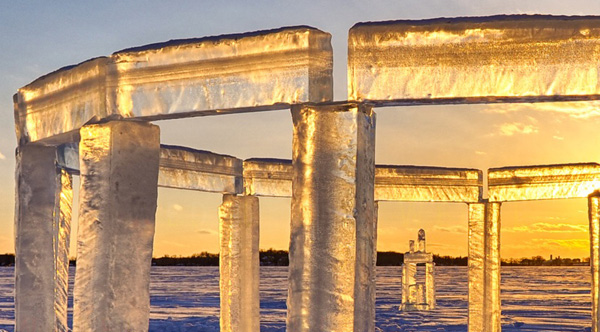 In the middle of Rock Lake, Wisconsin, lies 'Icehenge' - a massive ice sculpture resembling England's Stonehenge.